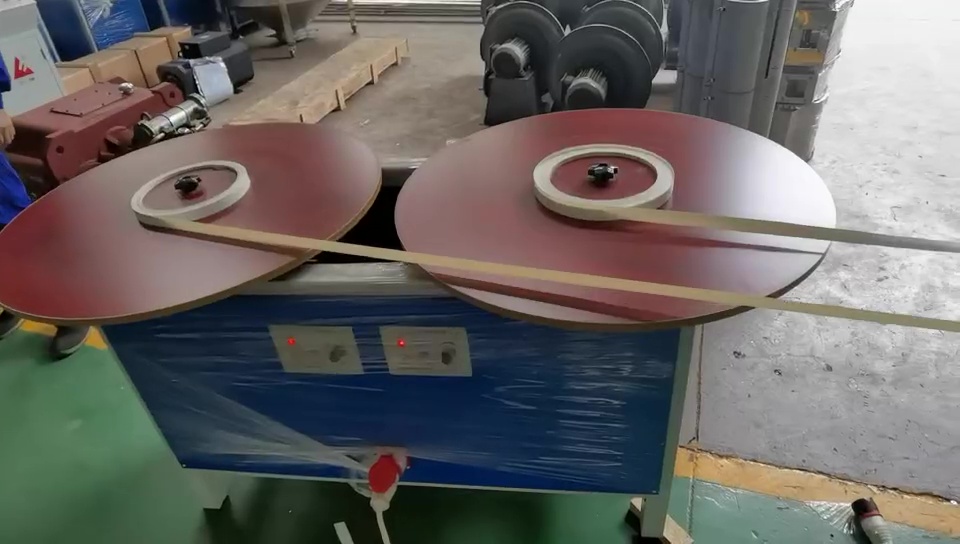 The winding system coils finished edge bands neatly with consistent tension, suitable for different band widths and thicknesses.