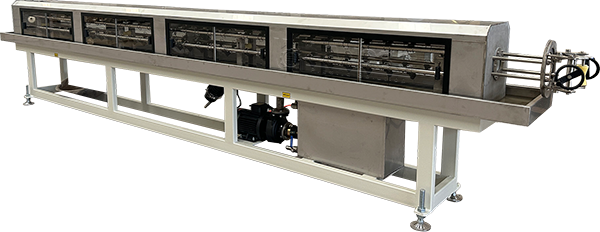 The vacuum calibration tank adopt two chamber structure: the vacuum calibration and cooling parts. Both of vacuum tank and spraying cooling tank adopt stainless 304 steel. The excellent vacuum system ensures precise sizing for pipes. We lengthen the vacuum and cooling tank to 8m. With much longer cooling process, the CPVC pipe can be well cooled and have better surface.