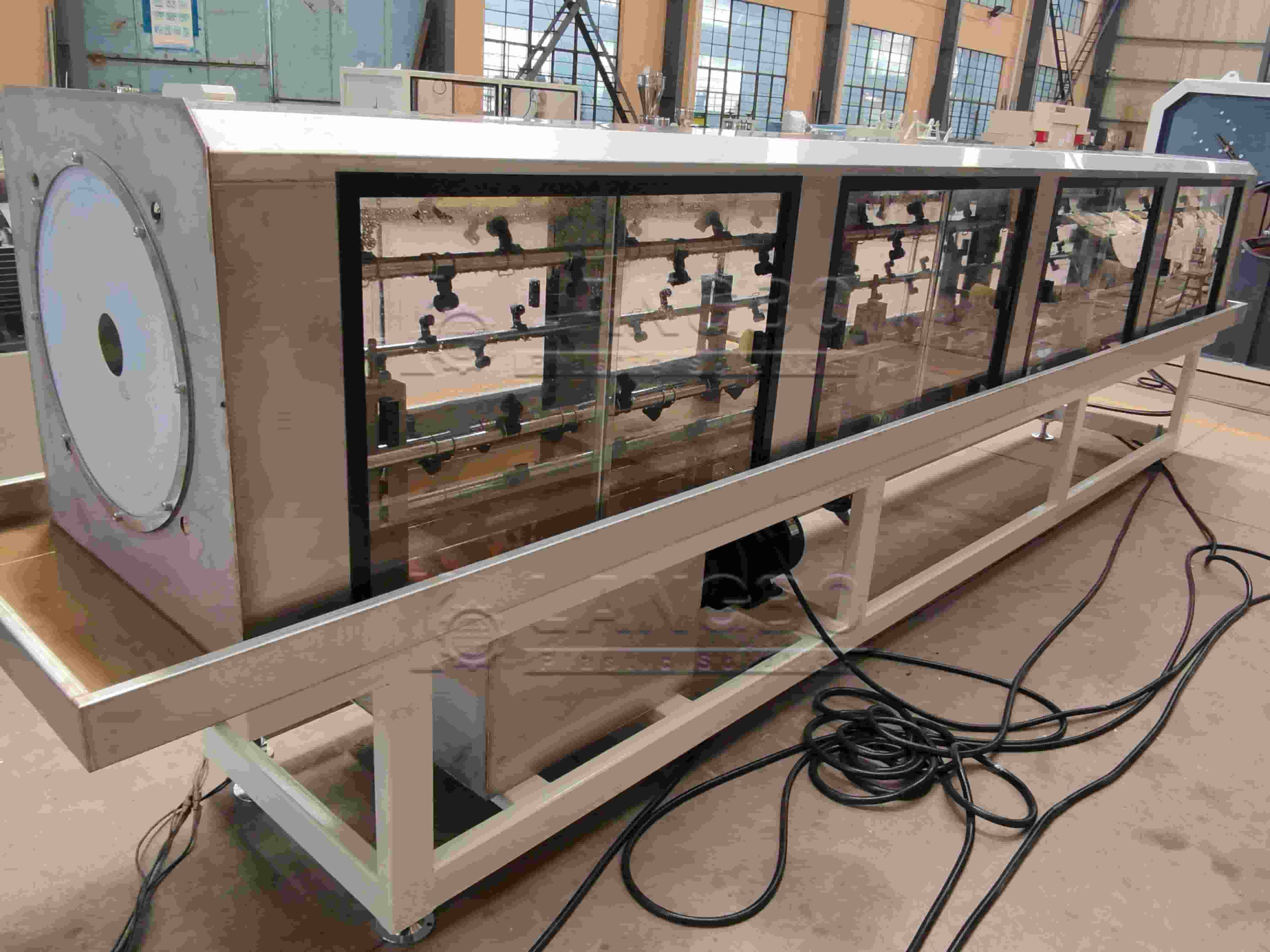 The vacuum calibration tank adopts stainless 304 steel. The excellent vacuum system ensures precise sizing for pipes. The holder in first step of the vacuum calibration tank guarantees the pipe shaped and provides extra power for the pipes moving on.