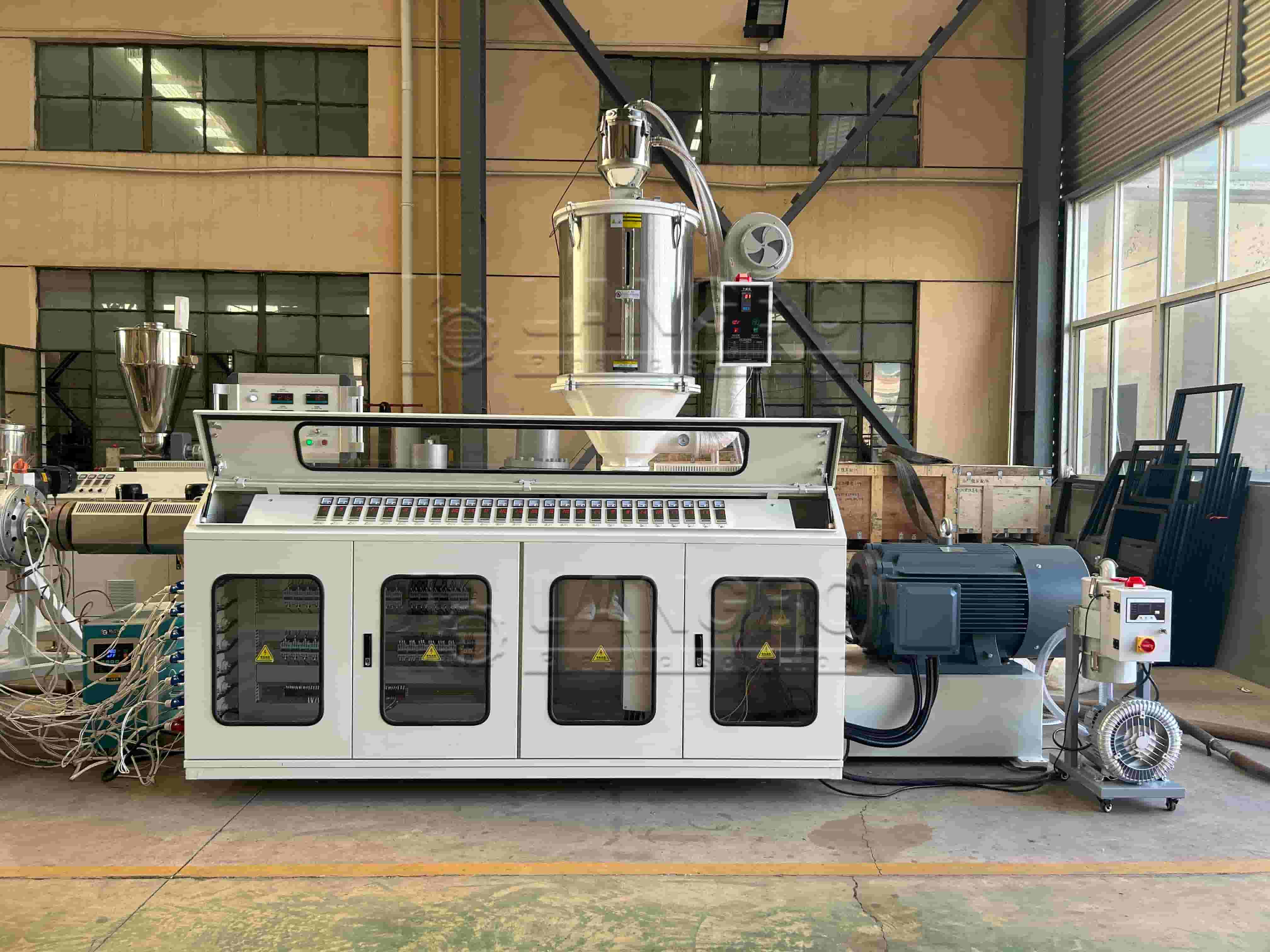 The extruder are crafted with top brand components to ensure production stability, efficiency and machine durability. Our extruder allocate international standard single screw and barrel. The screw has strong rigidity ensuring long service life and distinguished plasticizing effect.