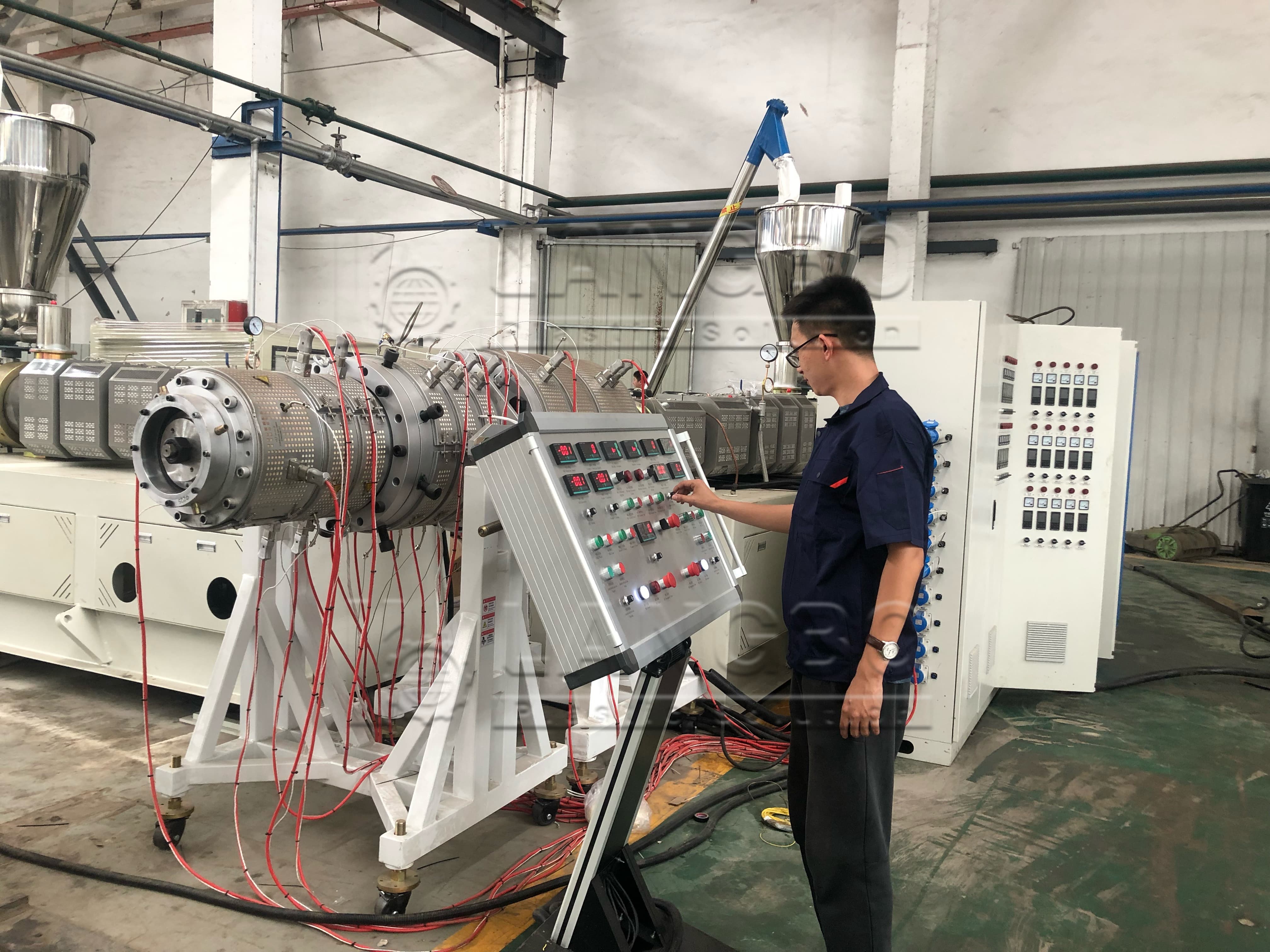 Various combination of extruders guarantees the extrusion volume for large pipe production