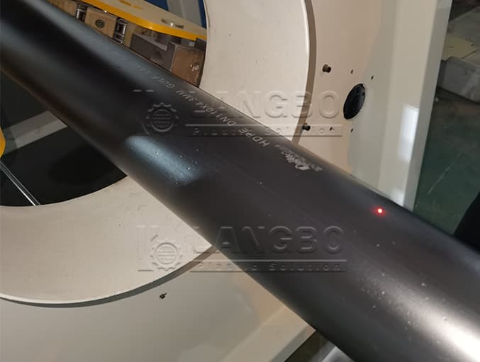 The produced HDPE pipe will lay on the stacker. The workers will take all the pipes and packed together.