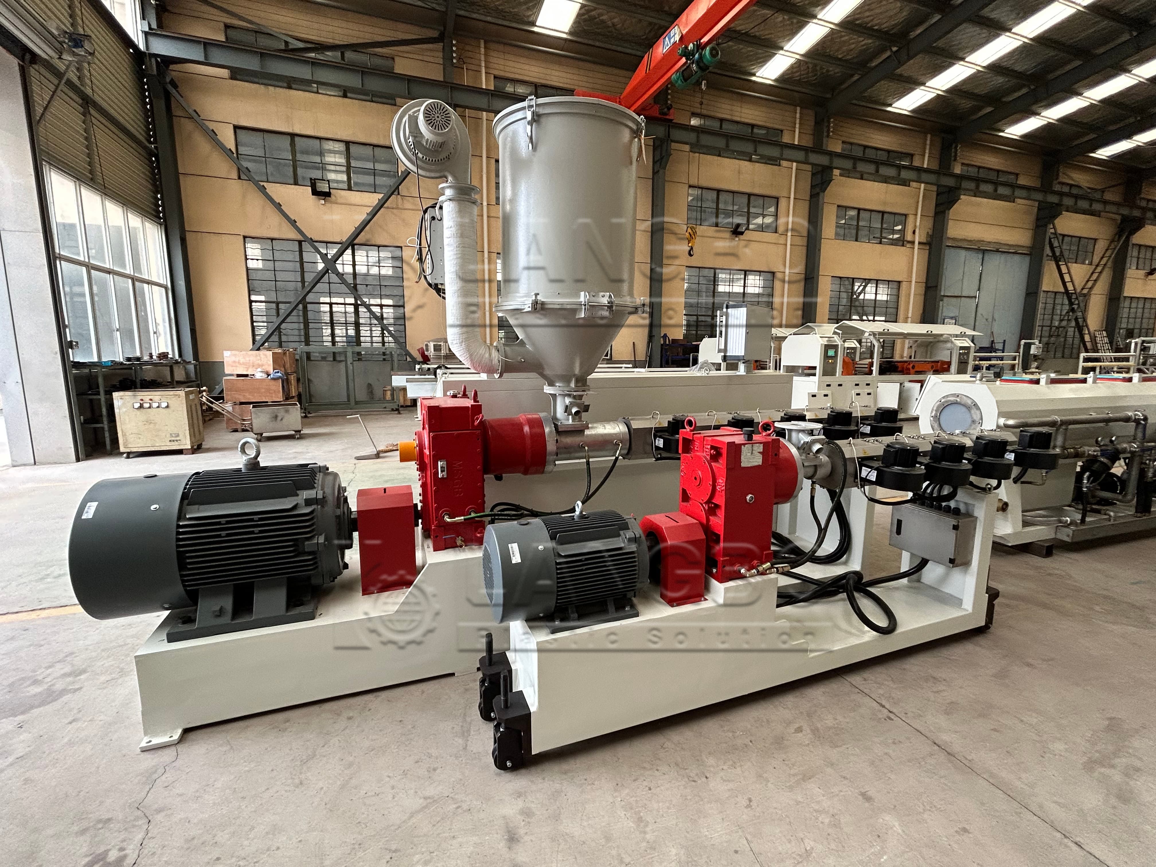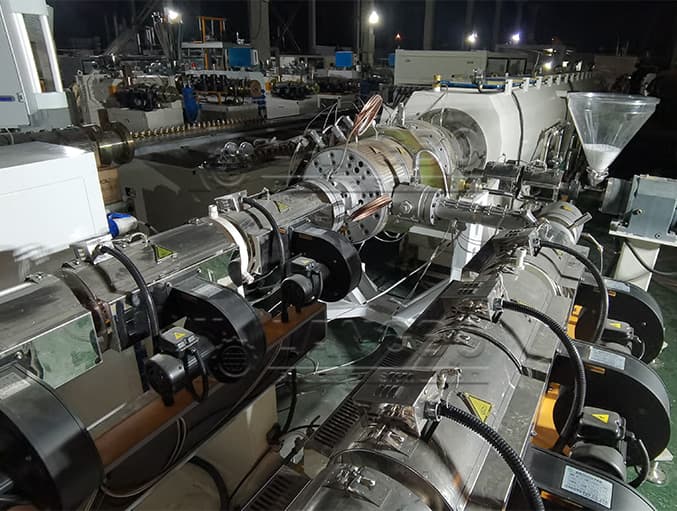 It consists of two single screw extruder. One extruder is responsible for the inner layer. Another two extruders are responsible for the two outside layers. The extruder are crafted with top brand components to ensure production stability, efficiency and machine durability. Our extruder allocate international standard single screw and barrel. The screw has strong rigidity ensuring long service life and distinguished plasticizing effect.