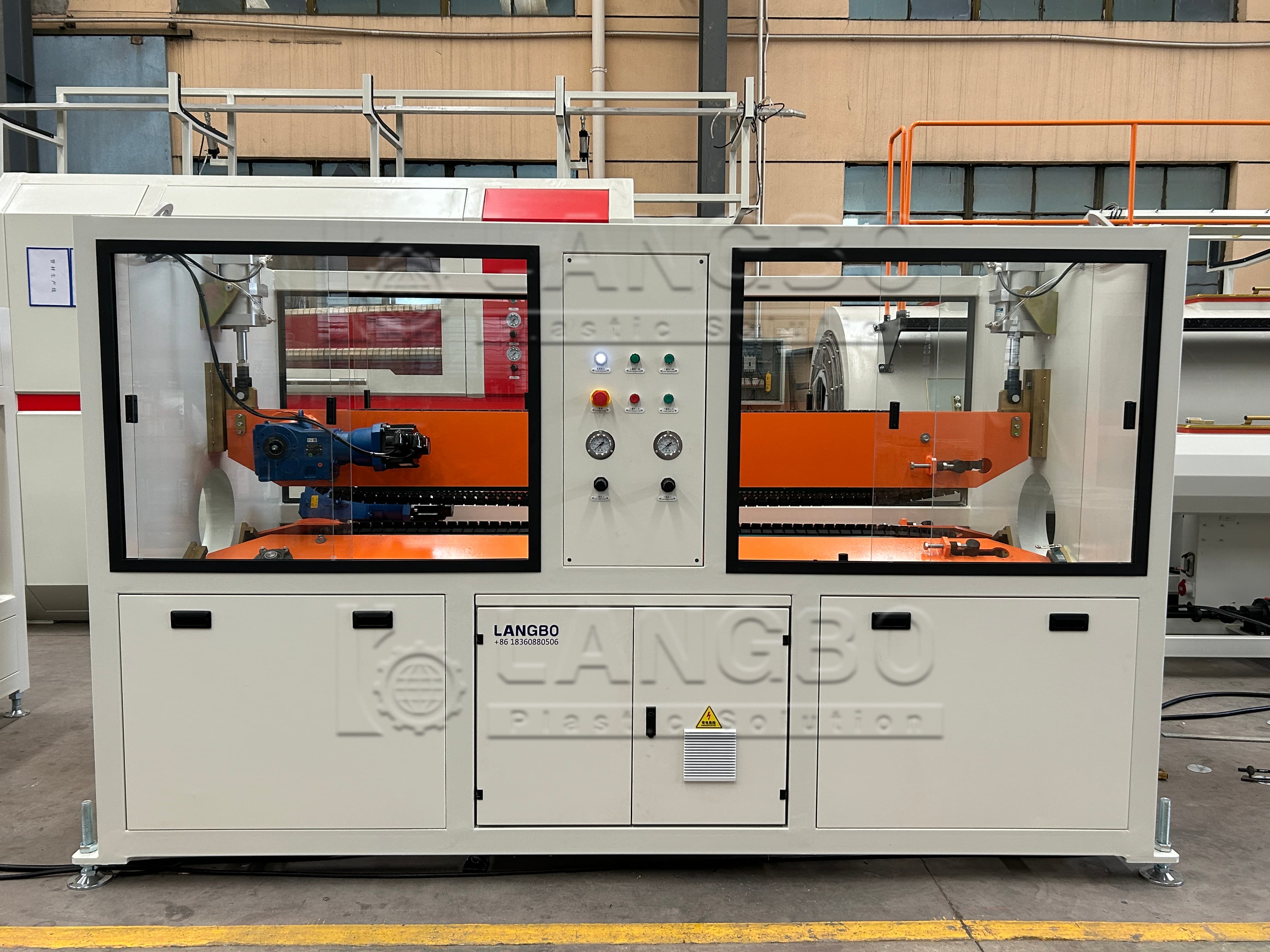 Hauling-off and cutting combination is optional with the advantage of space saving.