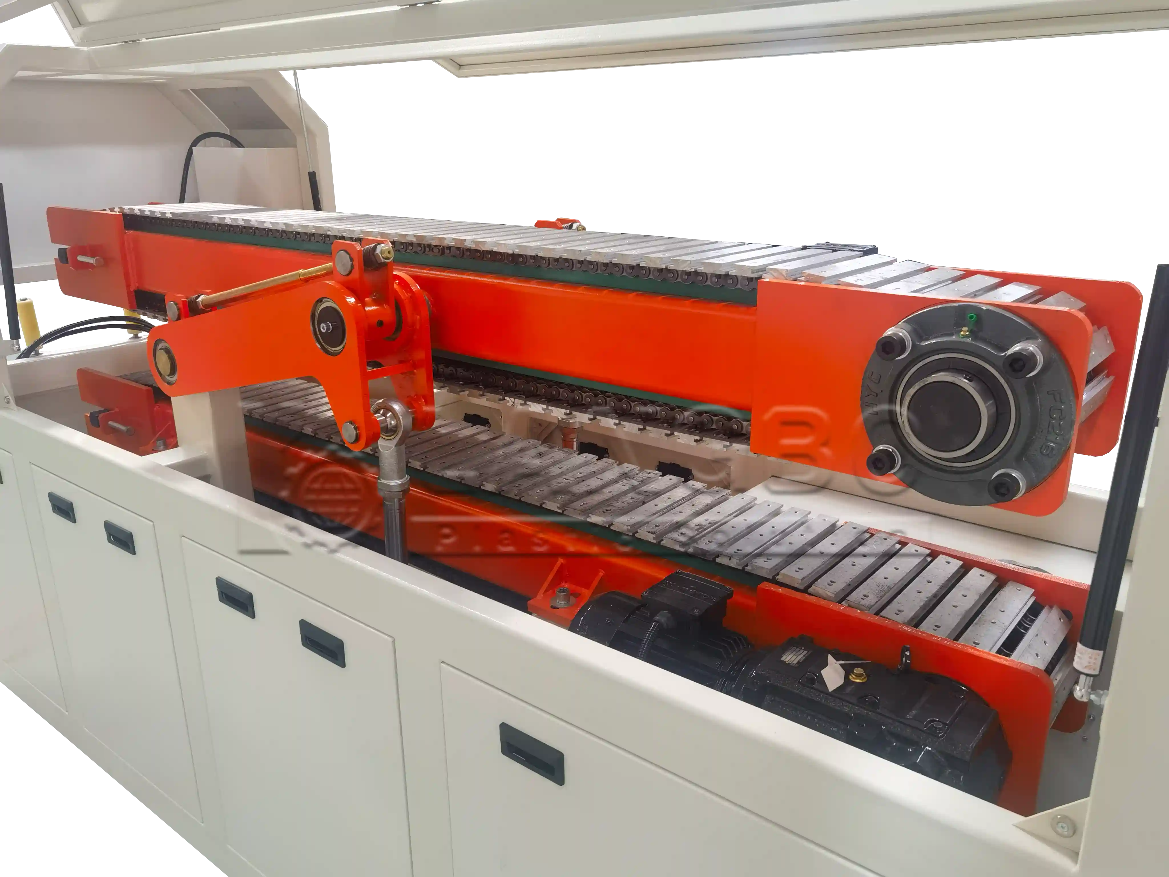 Two caterpillar haul-offs with tailored shape of rubber pads. It is better for effcifient haul-off