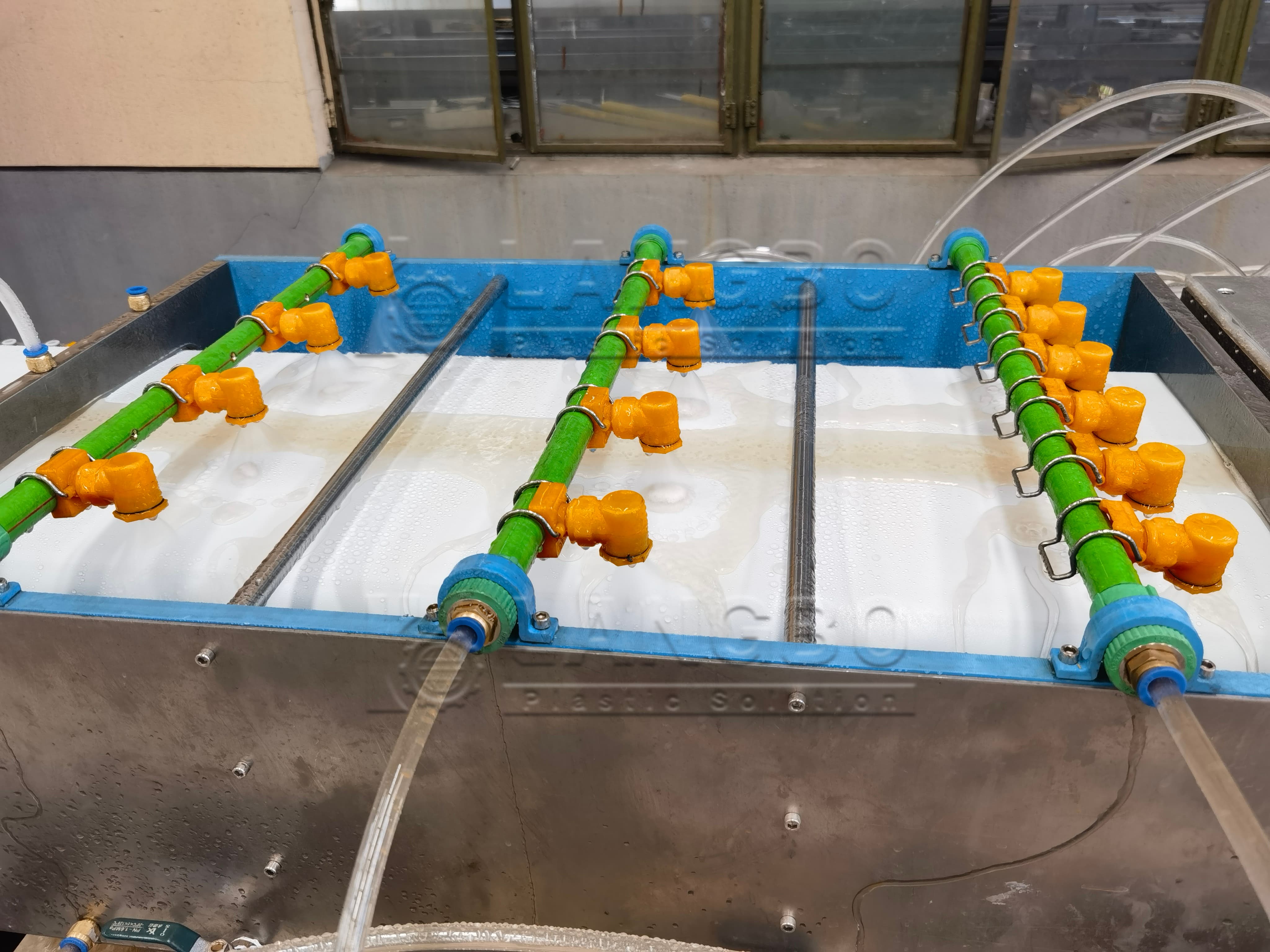The calibration table has stable steel frame and the whole body material is SUS 304 stainless steel. We have multi-dimension position adjustment system. With precious layout of water pumps and vacuum calibrator, the PVC profile will be rapidly shaping and cooling. Enough length of the calibration table ensures the shaping of the PVC profile.