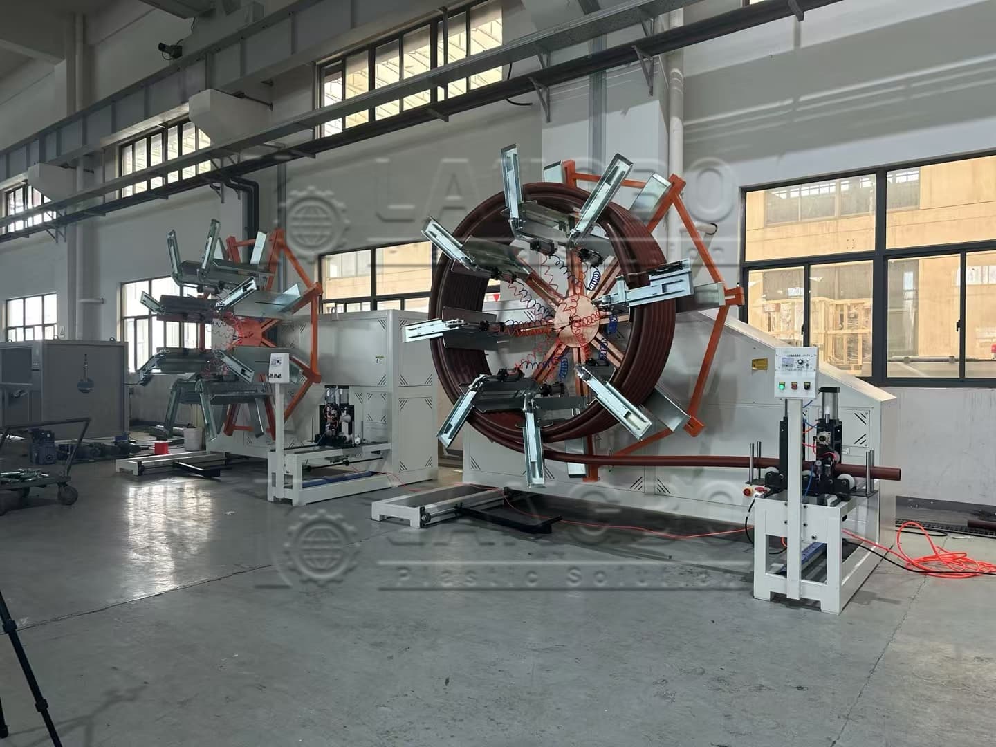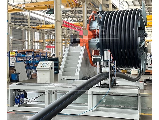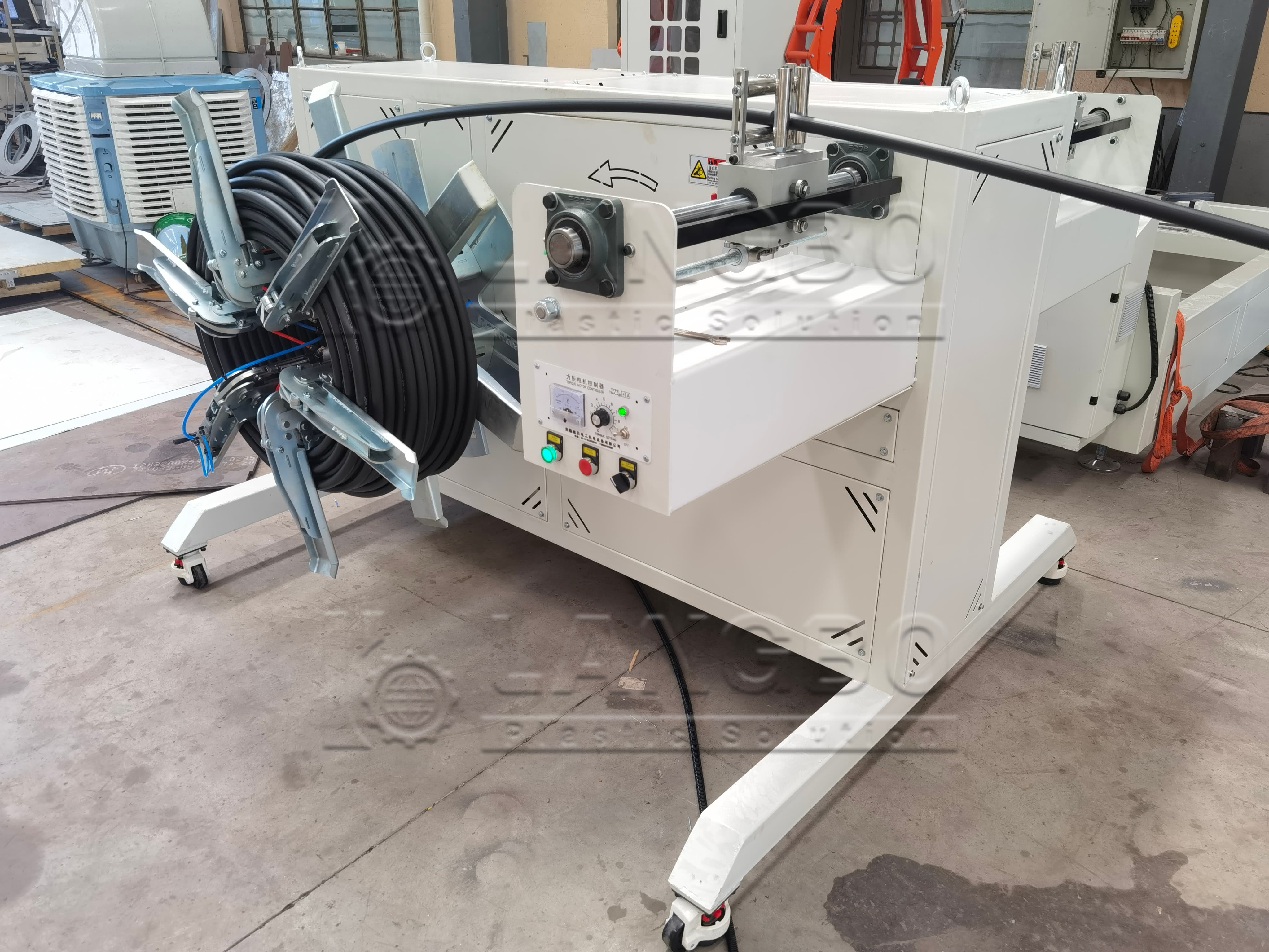 Frequency inverter control for soft winding force to protect the corrugated pipe shape