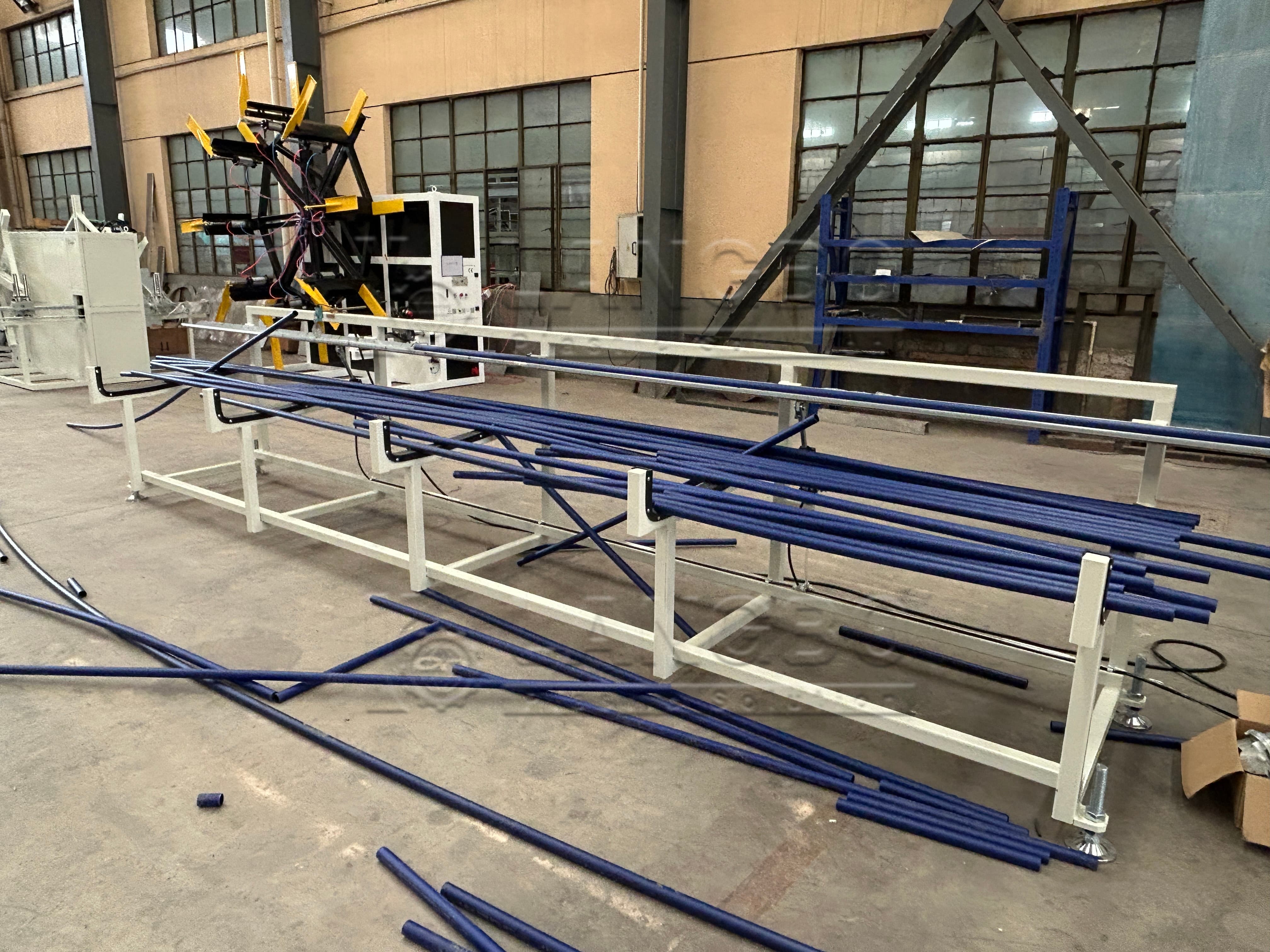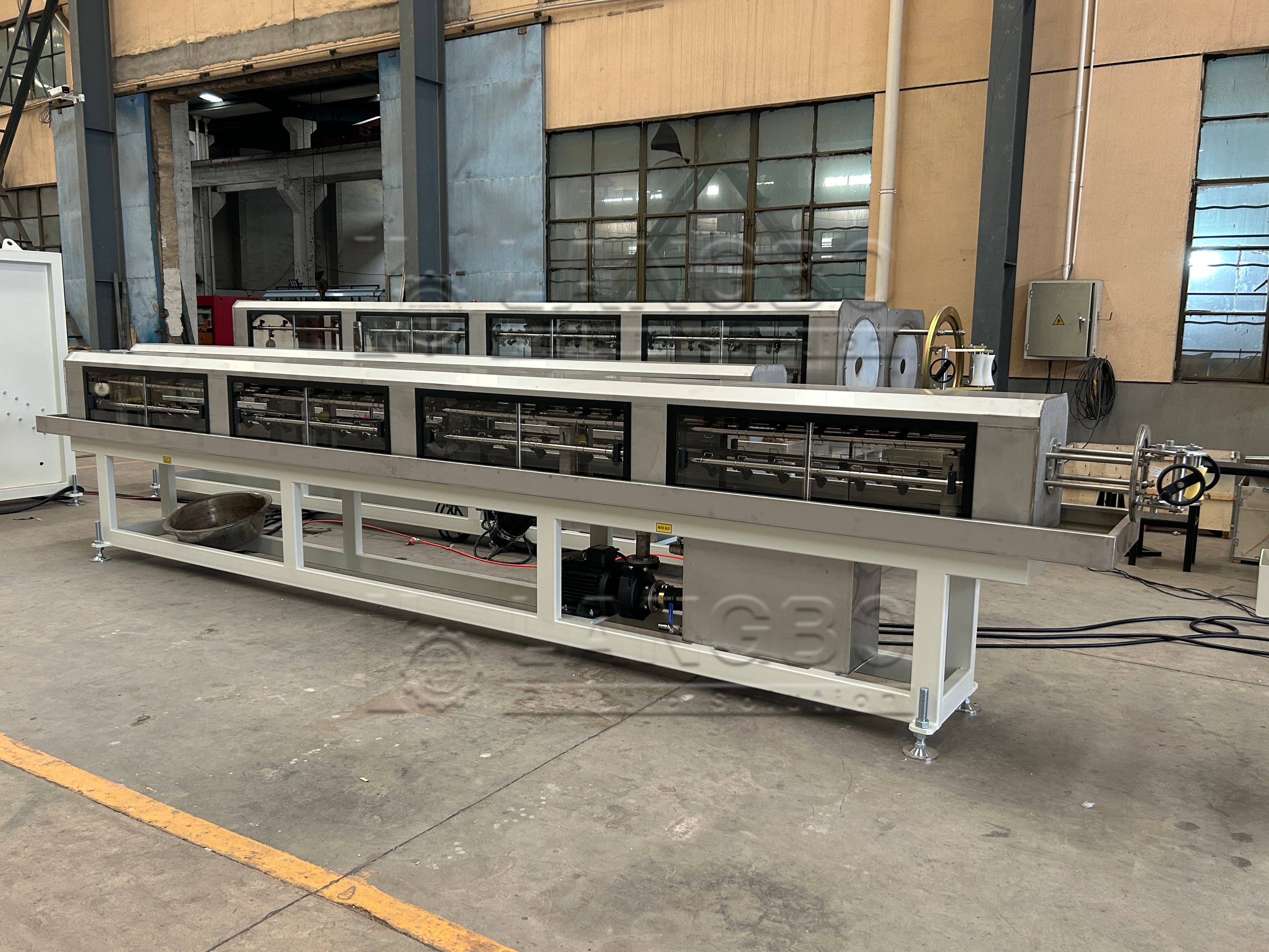 The vacuum calibration tank adopt two chamber structure: the vacuum calibration and cooling parts. Both of vacuum tank and spraying cooling tank adopt stainless 304 steel. The excellent vacuum system ensures precise sizing for pipes. We lengthen the vacuum and cooling tank to 8m. With much longer cooling process, the CPVC pipe can be well cooled and have better surface.
