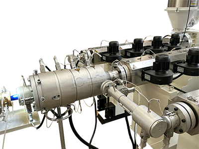 The mould design is different from the normal PPR pipe. It has four heating zones and long cooling calibrator. The special design for the mould ensures the produced product with shinny and smooth surface.