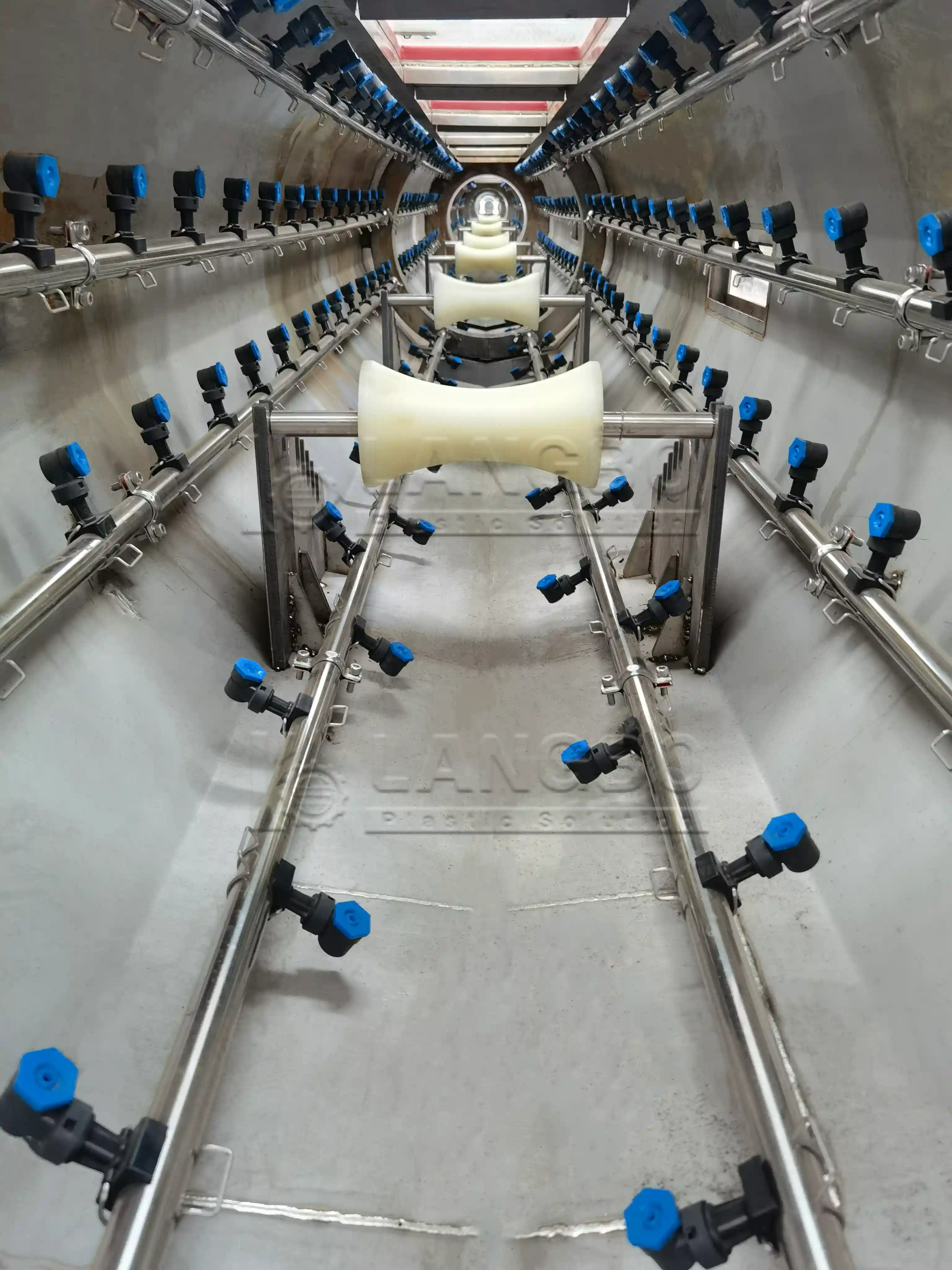 The vacuum calibration tank adopts stainless 304 steel. The excellent vacuum system ensures precise sizing for pipes. The holder in first step of the vacuum calibration tank guarantees the pipe shaped and provides extra power for the pipes moving on.