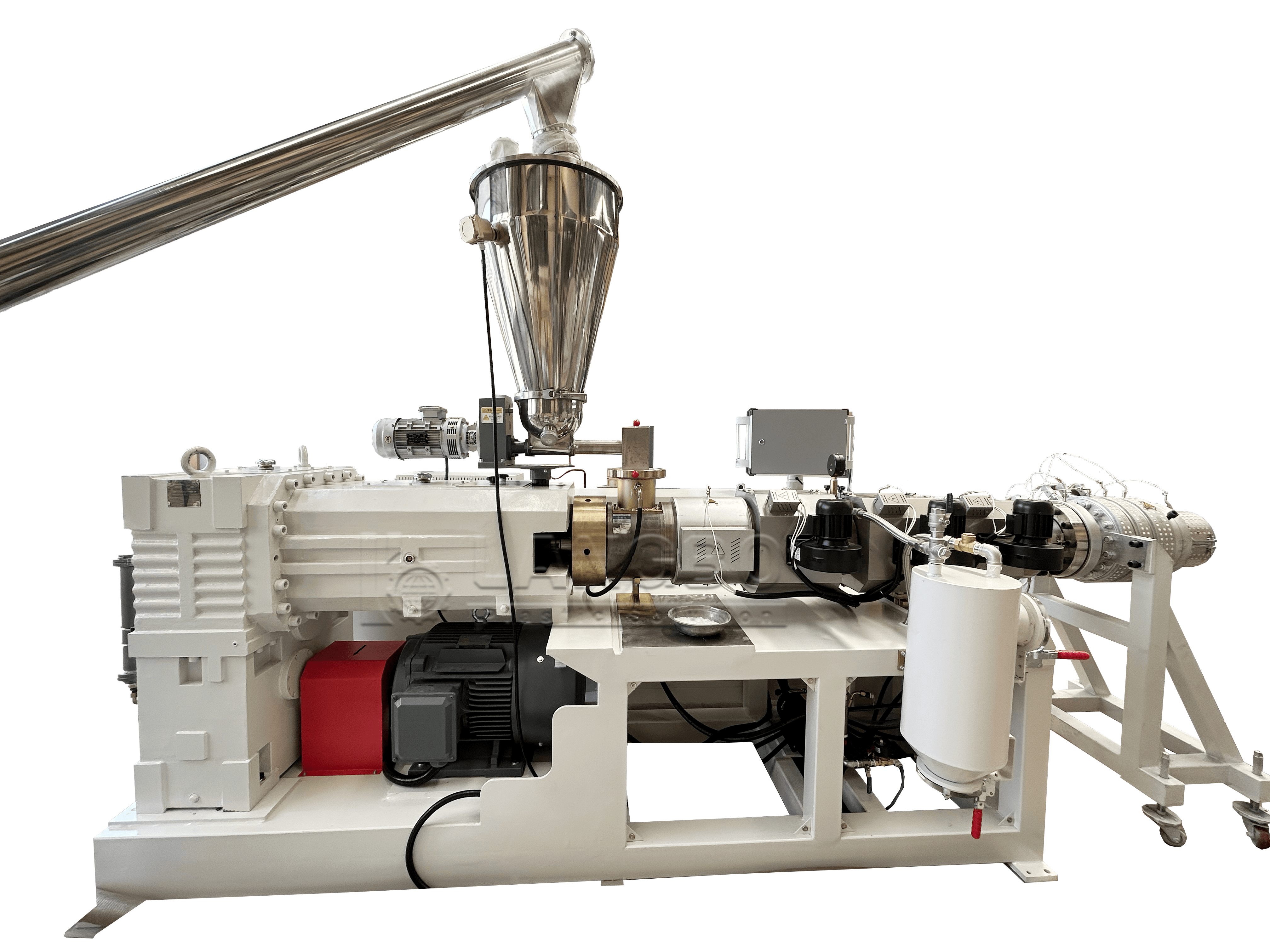 The extruder are crafted with top brand components to ensure production stability, efficiency and machine durability. Our conical twin screw extruder design cater to the raw materials feature ensuring homogeneous mixture, better plastification and conveying efficiency.