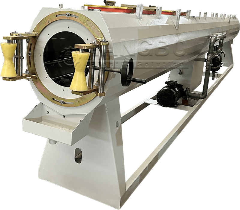 The vacuum calibration tank adopt two chamber structure: the vacuum calibration and cooling parts. Both of vacuum tank and spraying cooling tank adopt stainless 304 steel. The excellent vacuum system ensures precise sizing for pipes.