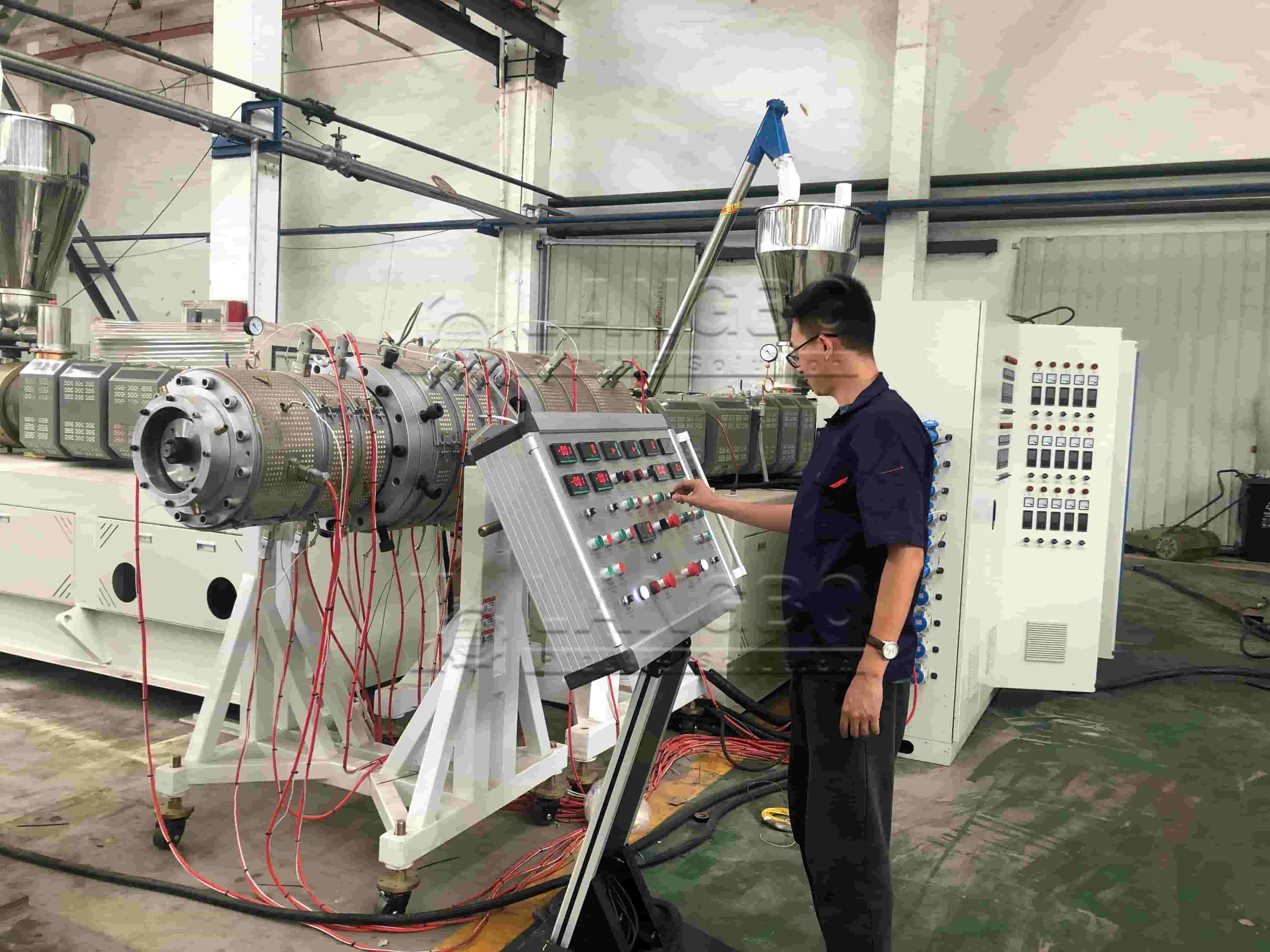 Various combination of extruders guarantees the extrusion volume for large pipe production