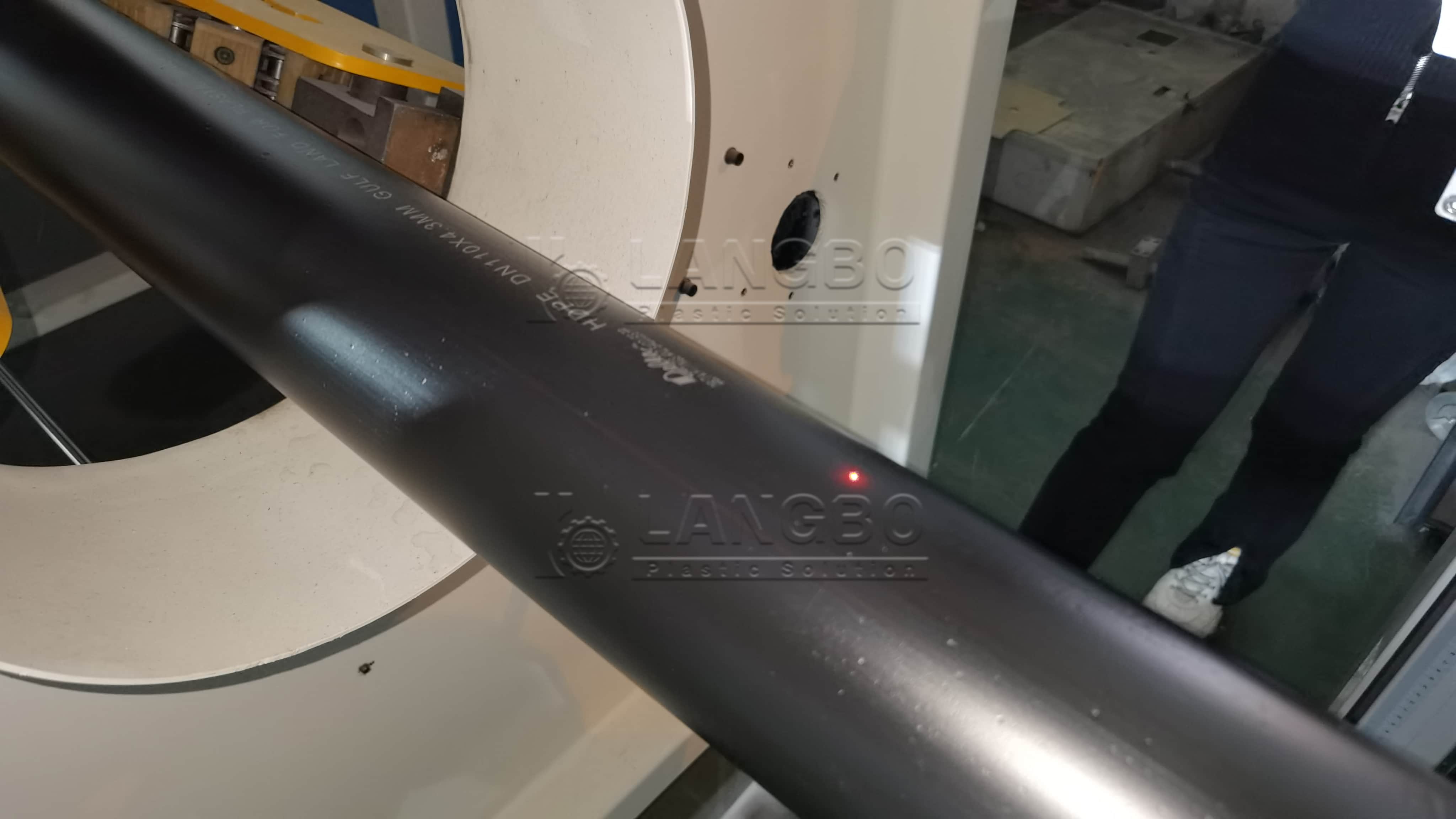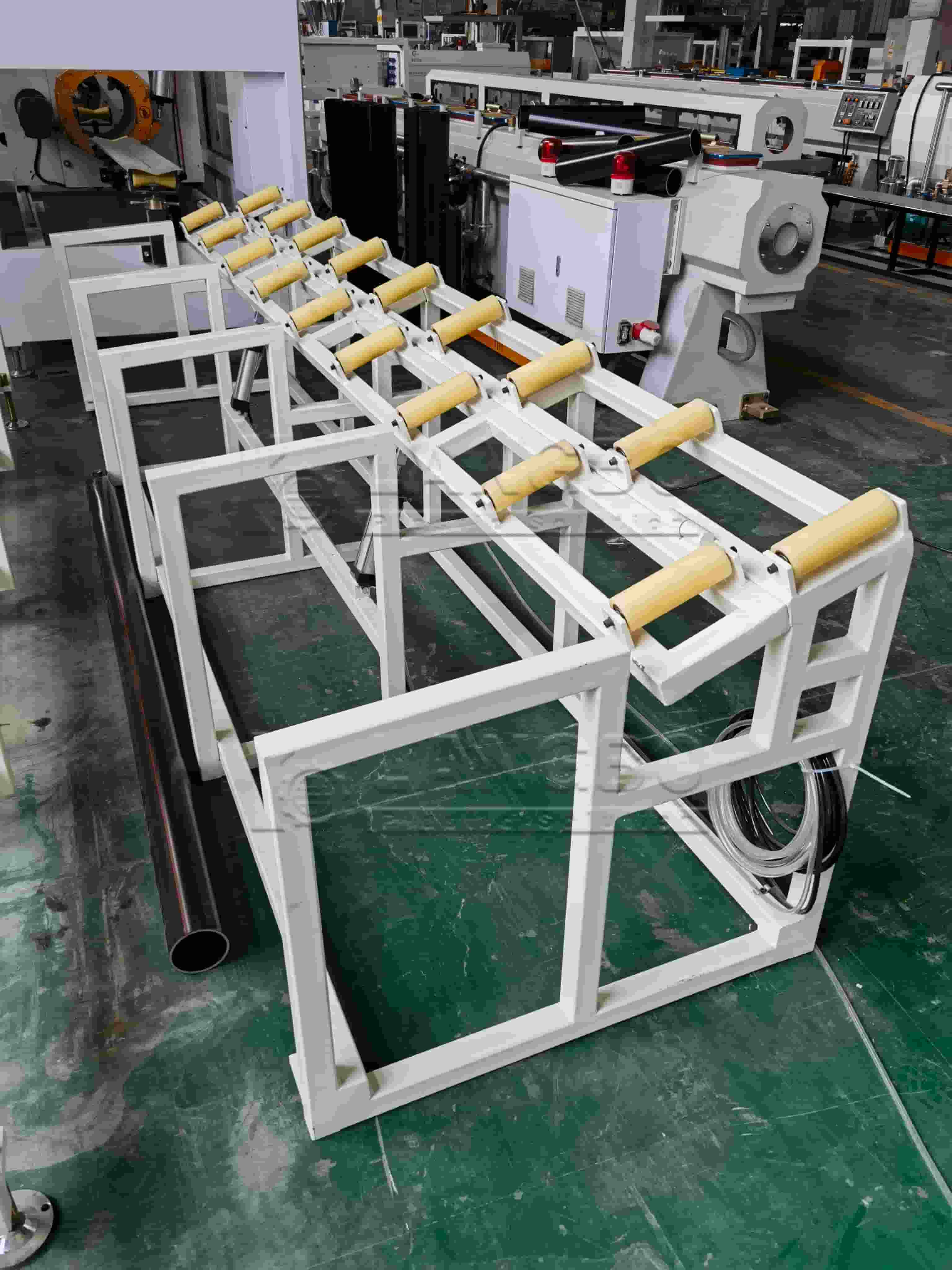 The produced HDPE pipe will lay on the stacker. The workers will take all the pipes and packed together.