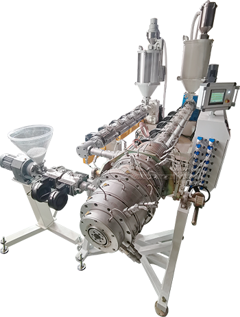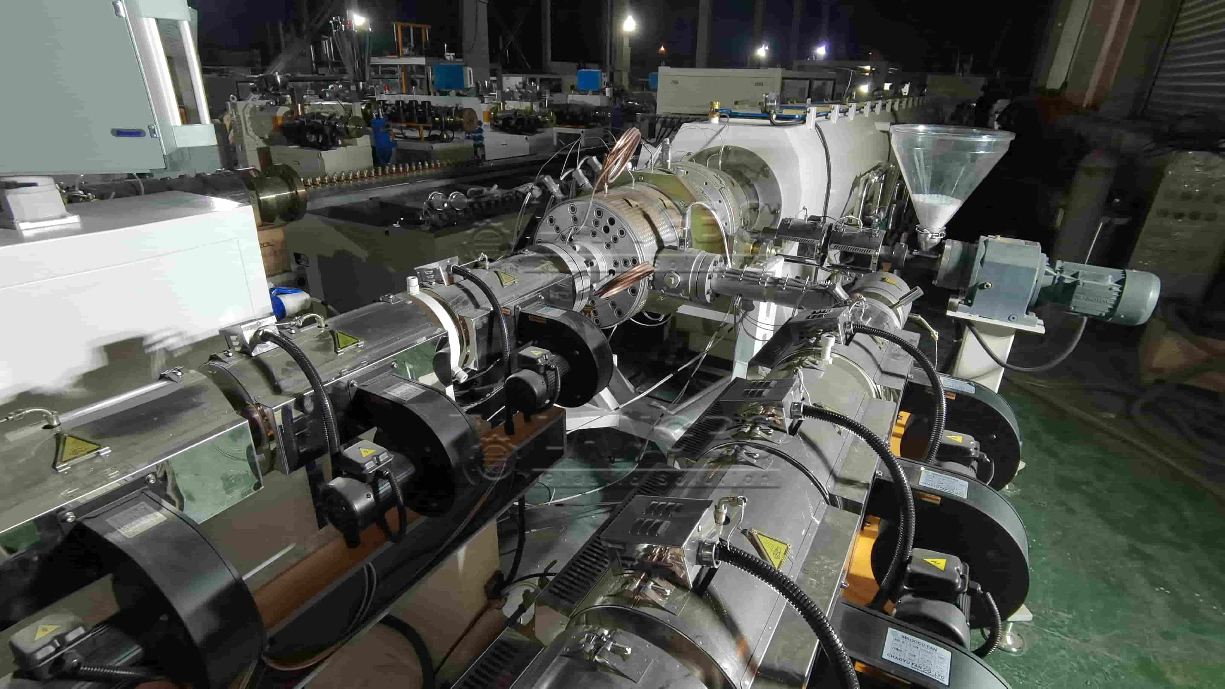 It consists of two single screw extruder. One extruder is responsible for the inner layer. Another two extruders are responsible for the two outside layers. The extruder are crafted with top brand components to ensure production stability, efficiency and machine durability. Our extruder allocate international standard single screw and barrel. The screw has strong rigidity ensuring long service life and distinguished plasticizing effect.