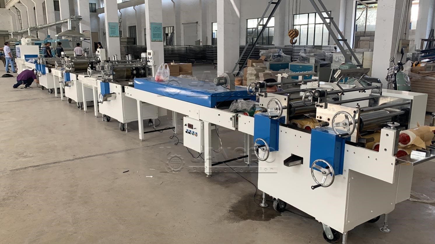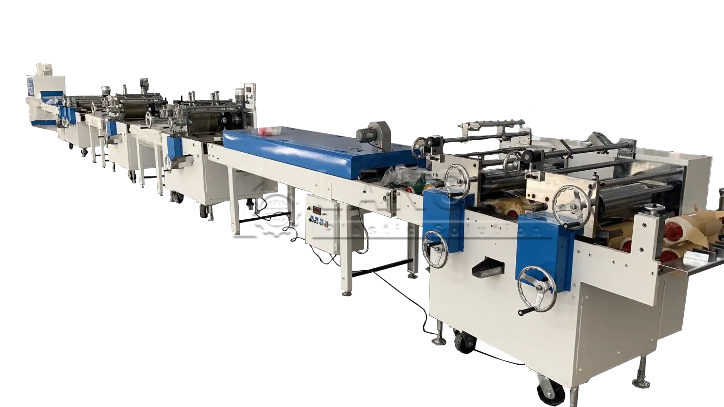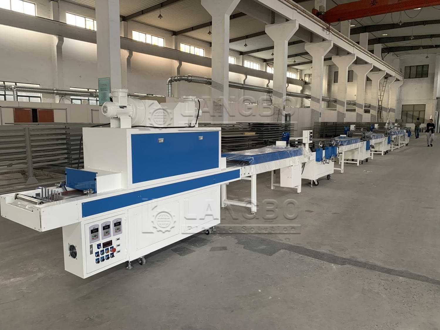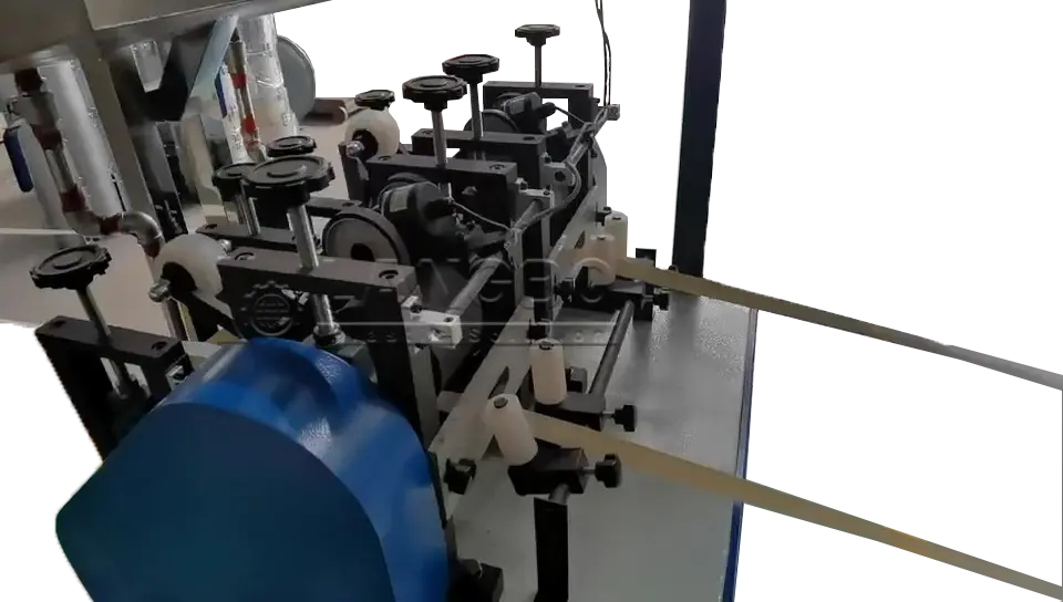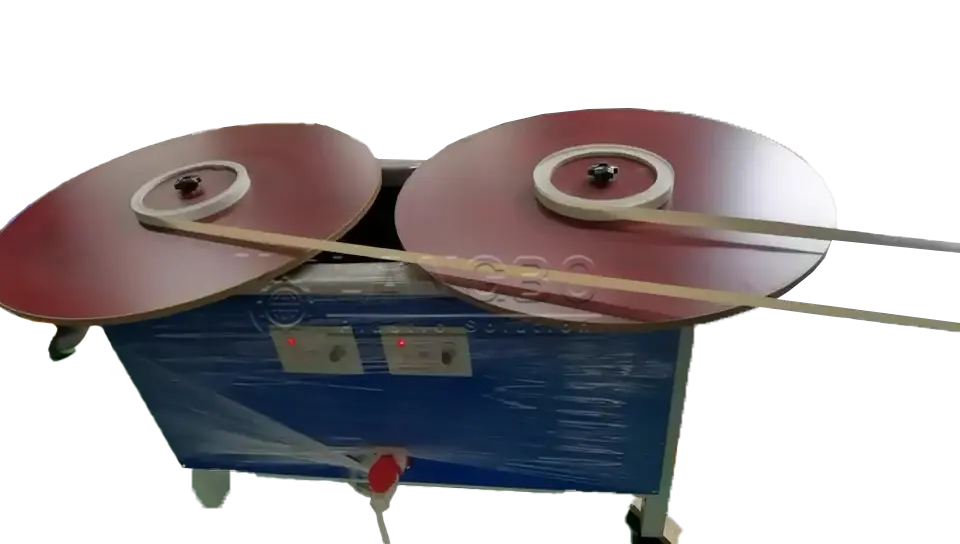 The edge bands are pulled with rubber roller, the hauling speed is adjusted by frequency inverter and the length counting integrated