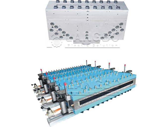 Optimized layout of valves for vacuum and water for rapid shaping and cooling