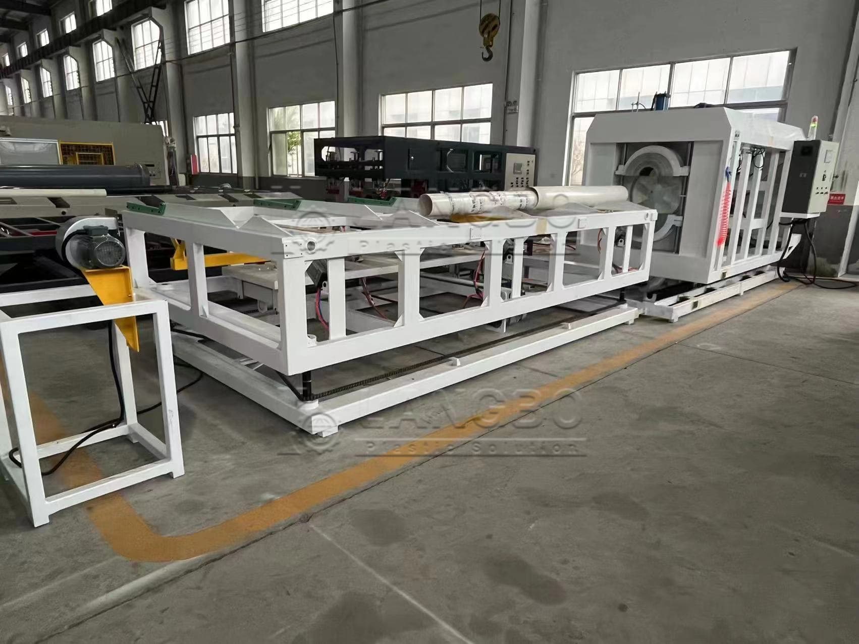 Pipe transportation device can take the pipe from extrusion line to the CNC threading machine.