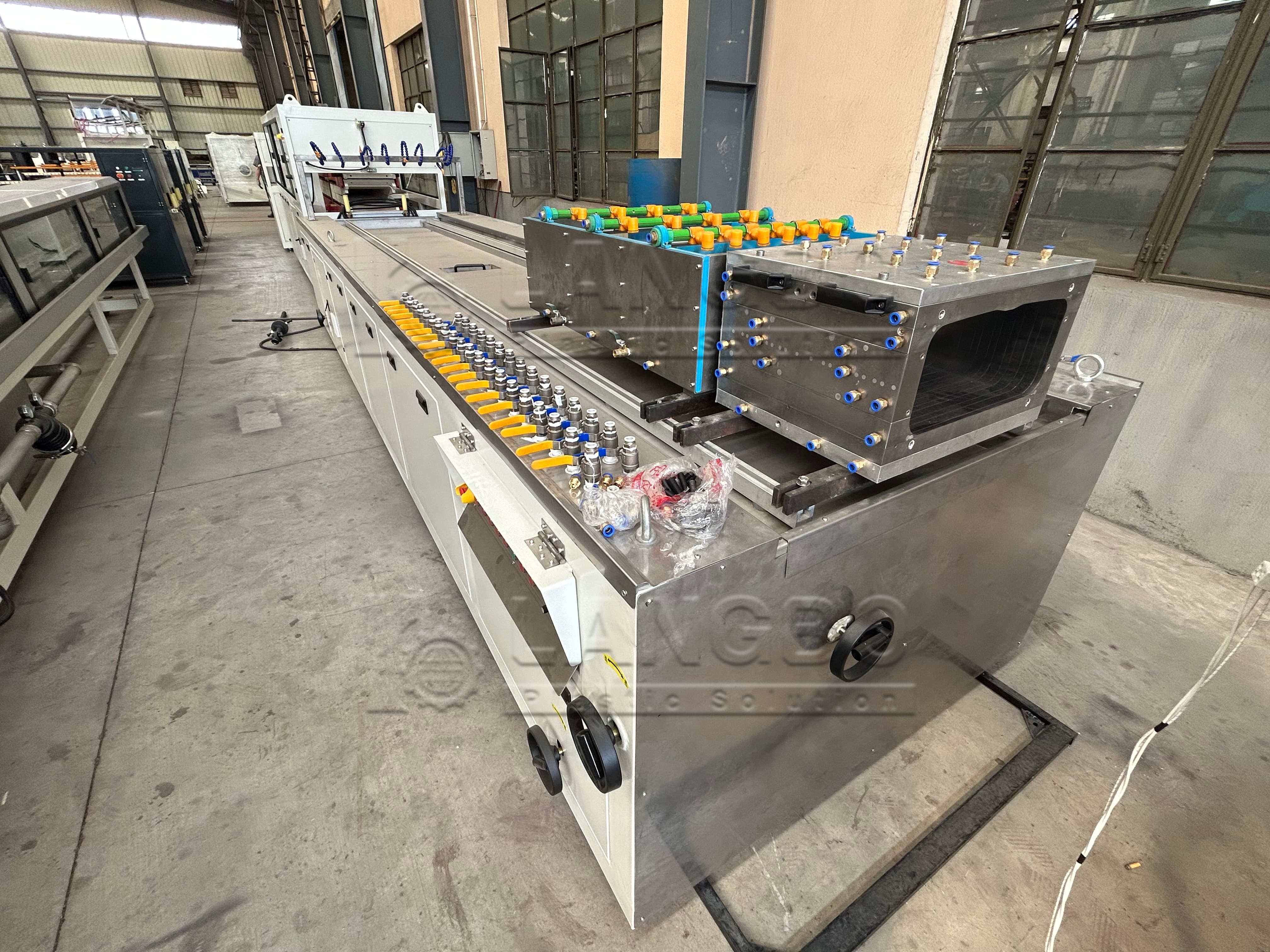 The calibration table has stable steel frame and the whole body material is SUS 304 stainless steel. We have multi-dimension position adjustment system. With precious layout of water pumps and vacuum calibrator, the PVC profile will be rapidly shaping and cooling. Enough length of the calibration table ensures the shaping of the PVC profile.